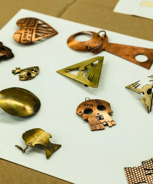 Graduates with an emphasis in metalsmithing/jewelry can pursue careers in a variety of fields, including jewelry design and fabrication, blacksmithing, welding, production casting, foundry work, and sheet metal fabrication. Many also establish their own studios to create and sell artwork, jewelry, or functional objects through galleries, art fairs, or online platforms.